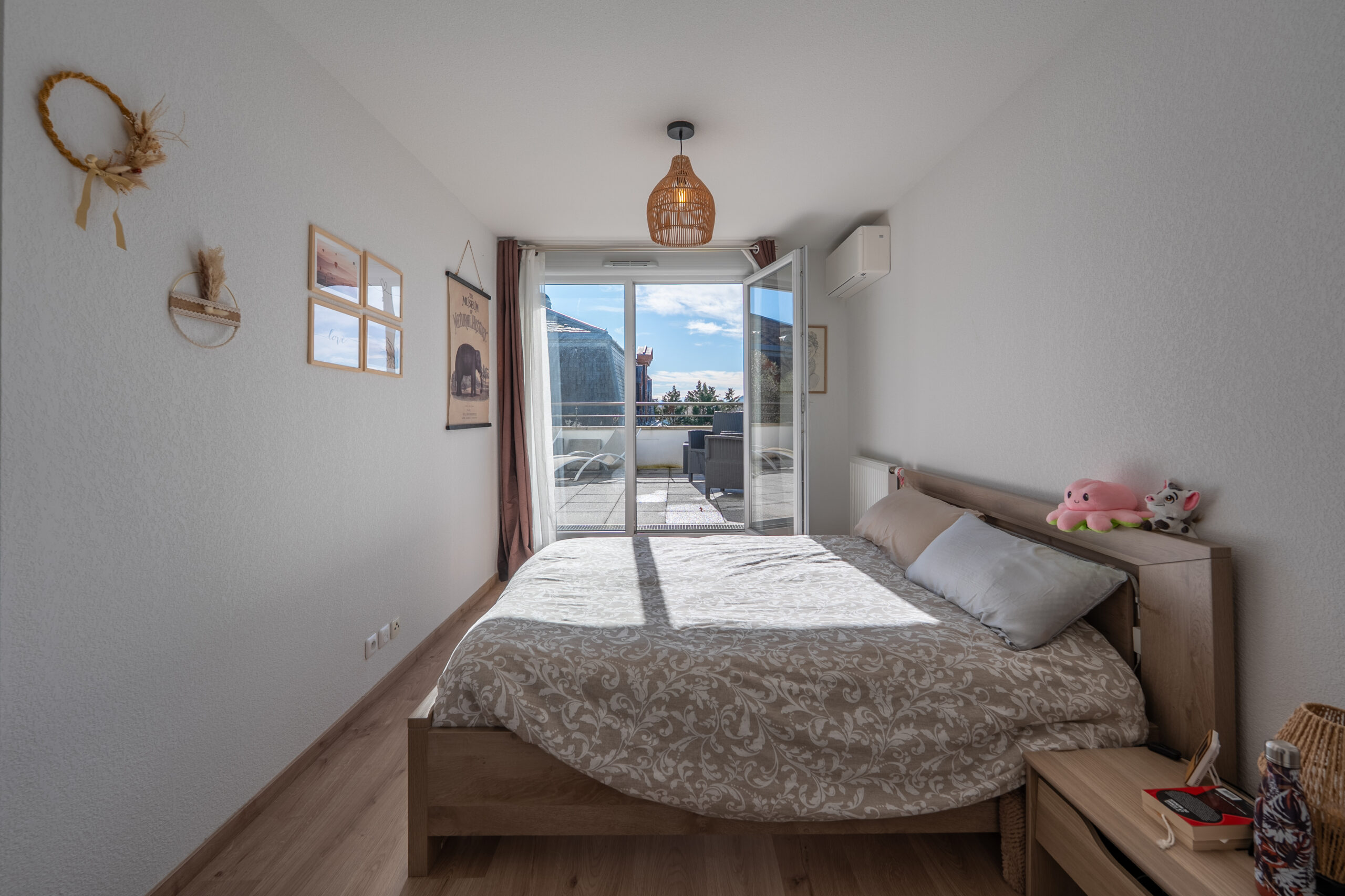 EXCLUSIVITÉ - Toulouse Quartier Saint-Simon Au sein d’une résidence sécurisée de 2020, au 2ᵉ et dernier étage, appartement 4 pièces de 84m² en excellent état comprenant : • Entrée avec placard • Séjour/cuisine équipée de 33m² • 3 chambres (placards + dressing) • Salle de bains avec baignoire et double vasque • WC séparé • Terrasse de 61m² exposée sud Prestations de qualité : climatisation réversible, chauffage individuel gaz, double vitrage PVC, volets roulants électriques, domotique, fibre, ventilation simple flux. Annexes : • Garage double boxé en sous-sol (~24m²) • Cave privative d'environ 4m² Charges copropriété : 1 500€/an Proximité immédiate bus, commerces, écoles et services. Appartement sous décennale jusqu'à 2030 ! Prix : 249 900€ (honoraires d’agence inclus, à la charge de l’acquéreur) 📞 Pour plus d’informations ou organiser une visite, contactez Monsieur OLMOS. A VISITER RAPIDEMENT !