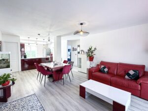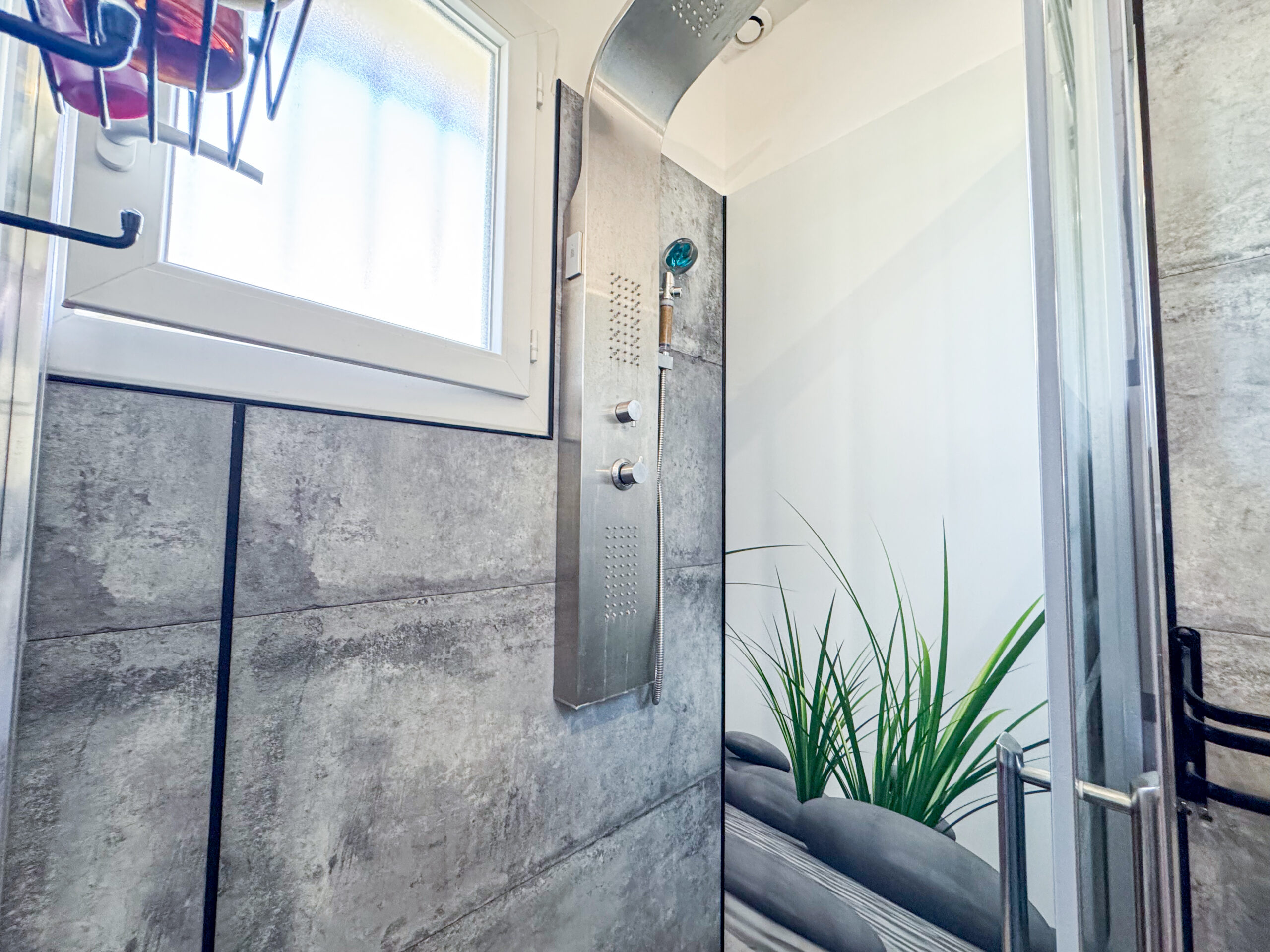 Côté prestations, l’appartement bénéficie du double vitrage, de volets roulants électriques, d’un thermostat connecté, d’une ventilation simple flux et de la fibre optique.