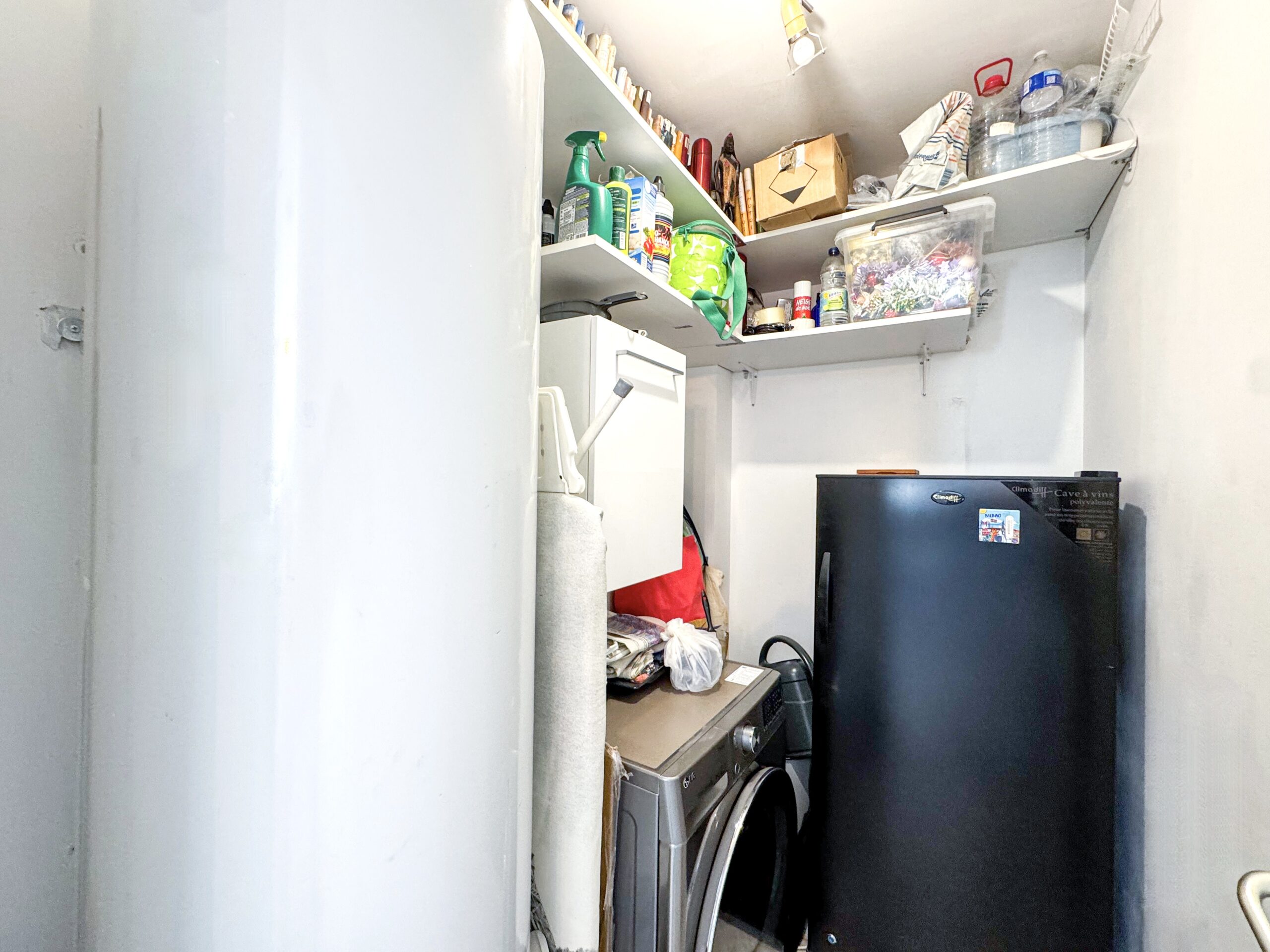 Une salle d’eau refaite à neuf, des toilettes séparés et une buanderie complètent l’agencement intérieur.