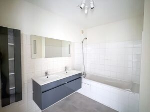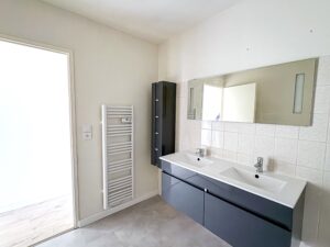 Salle de bains rénovée avec double vasque – WC séparé