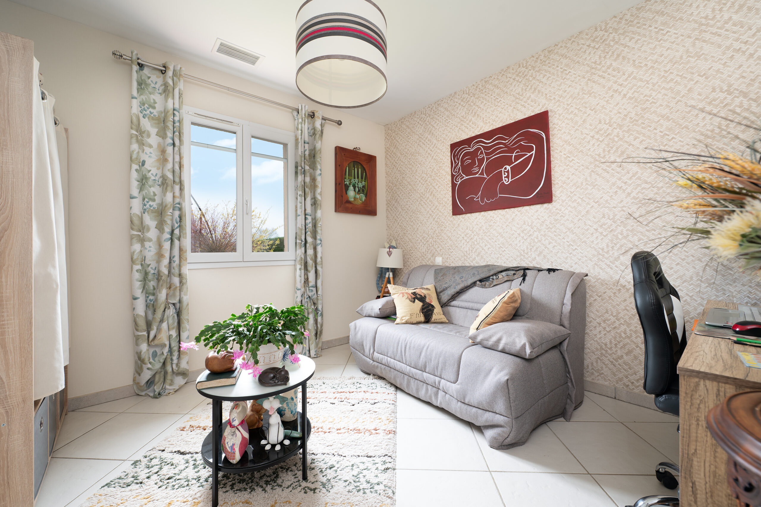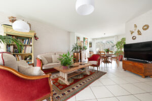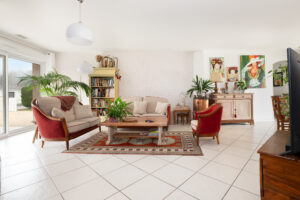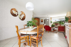 Le cœur de la maison, c’est un séjour de 44,11 m², spacieux et convivial, permettant d’aménager sans difficulté un vrai salon et un espace repas confortable. La circulation est fluide et l’ensemble profite d’une belle luminosité, renforcée par l’orientation sud-est.