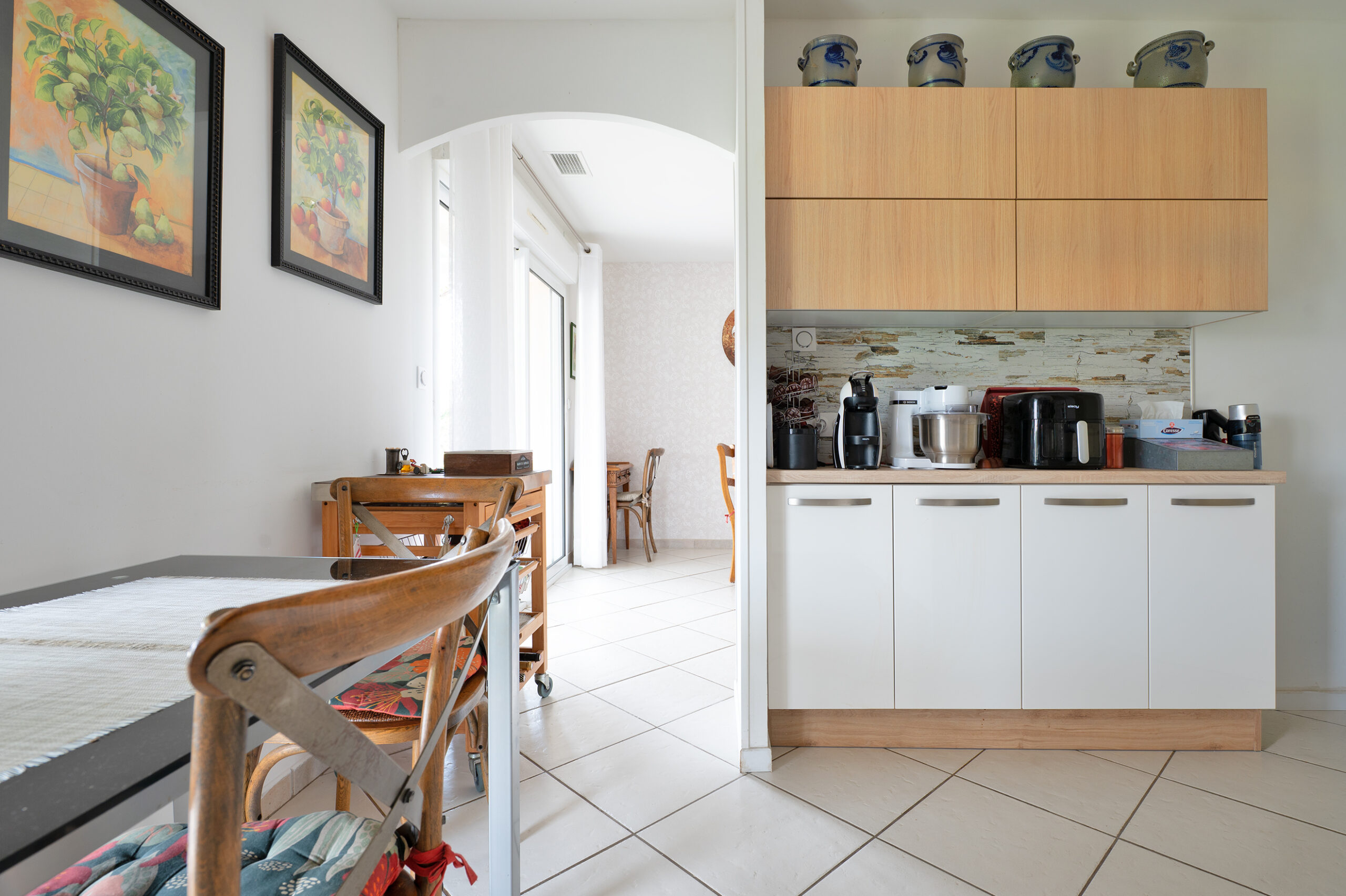 Dans le prolongement, la cuisine, indépendante, propose une surface de 12,07 m². Elle est aménagée et équipée, avec de nombreux rangements, et pensée pour une utilisation quotidienne pratique.