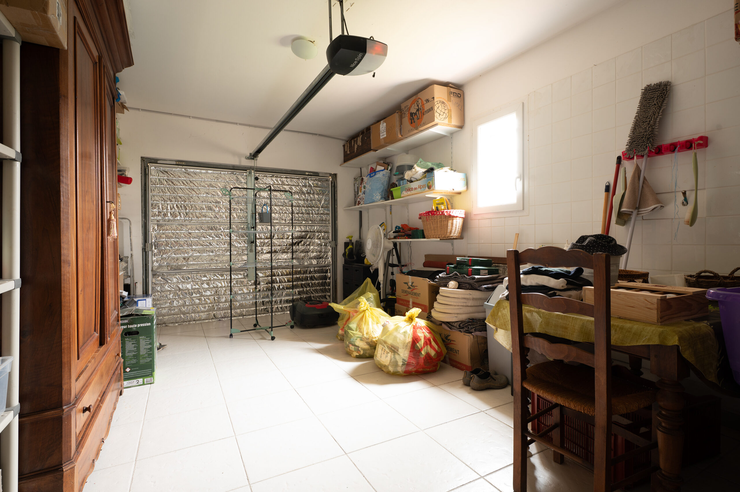 En complément, la maison dispose d’un garage de 20,11 m², avec porte motorisée, et surtout un point très intéressant : deux arrivées d’eau, permettant d’envisager facilement un coin buanderie, un atelier ou un aménagement plus poussé selon les besoins.