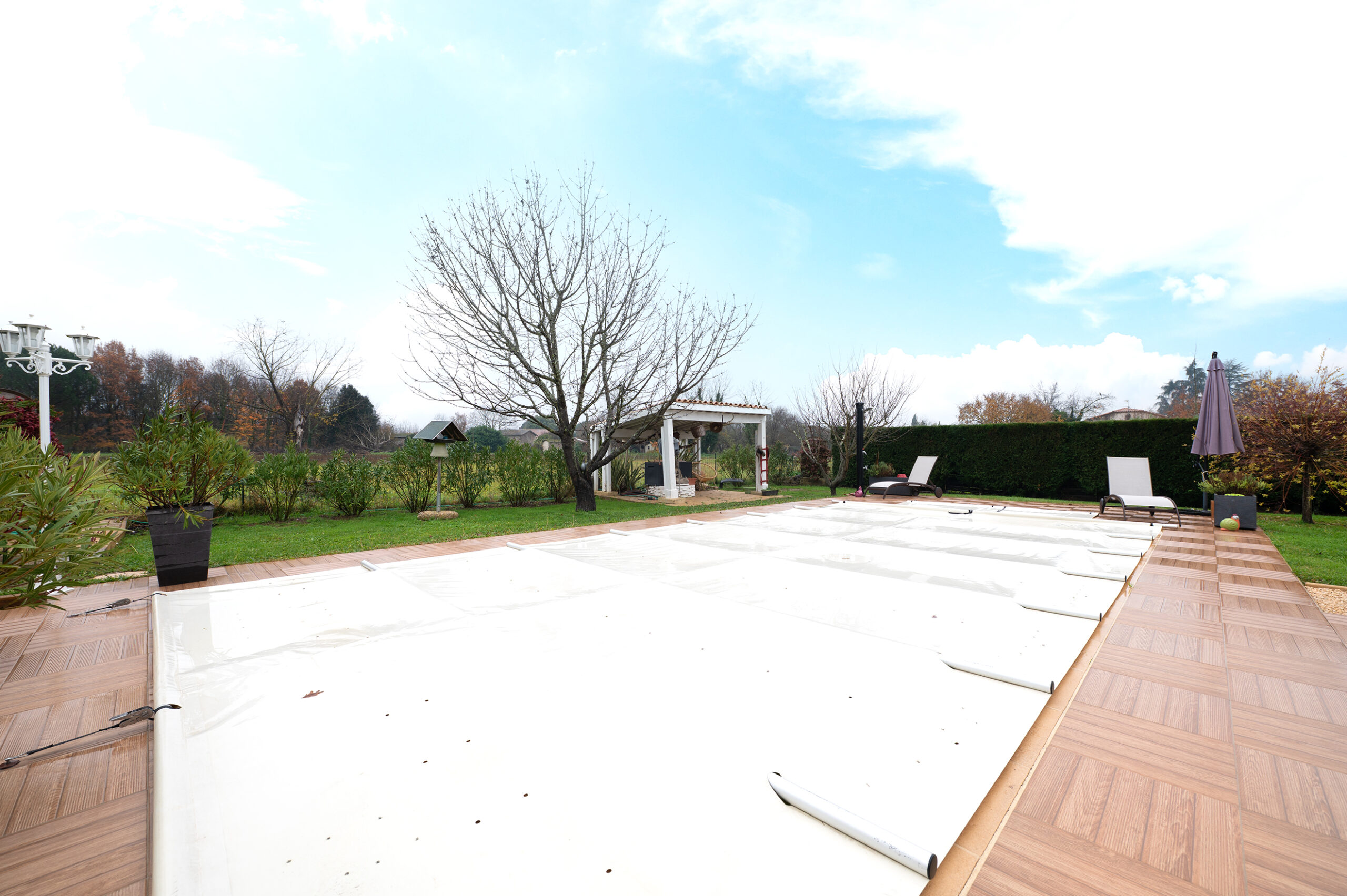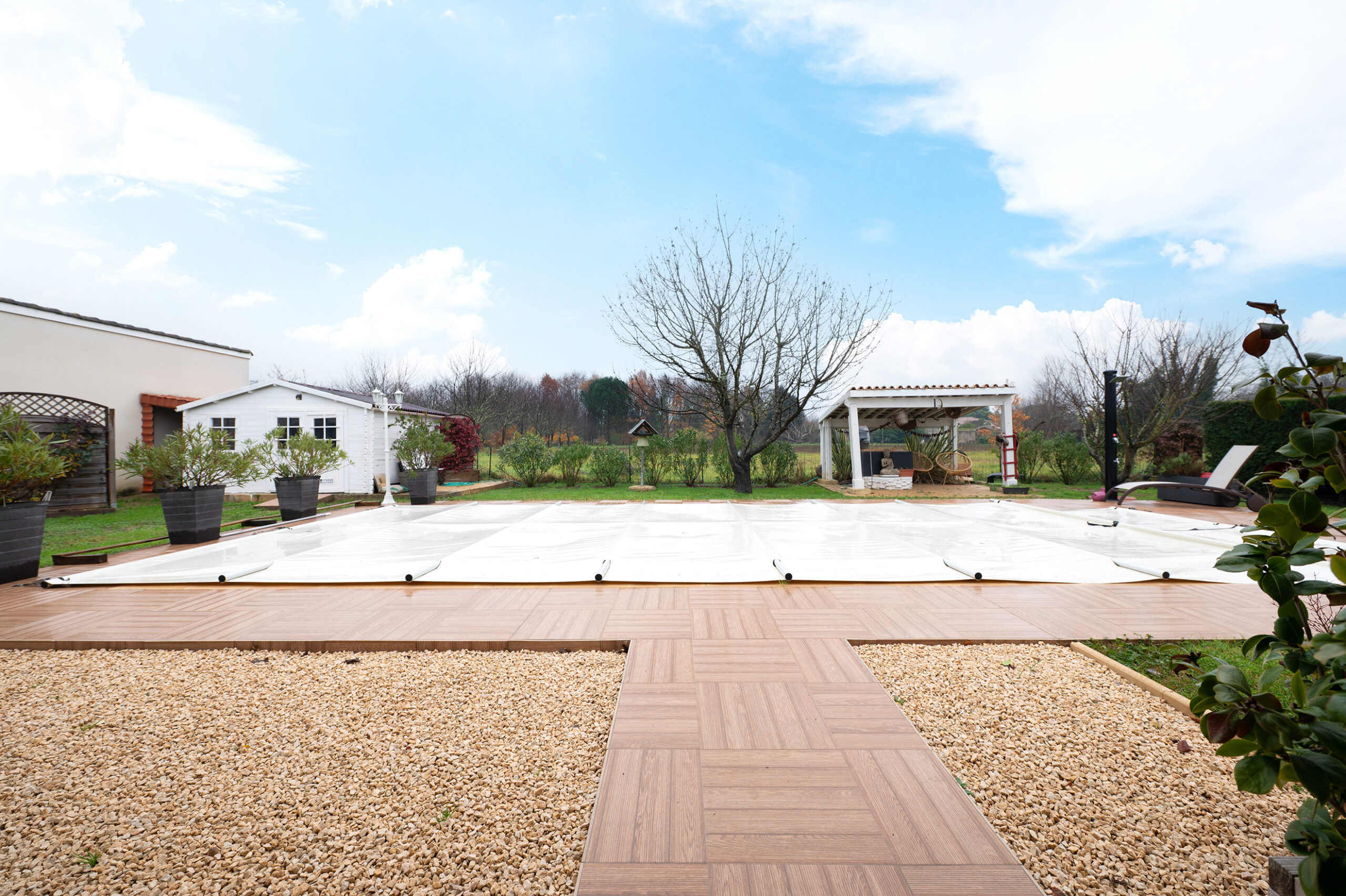 Un pool house / cabanon de 13,10 m² vient compléter cet espace, ainsi qu’un débarras extérieur de 4,90 m² pour le stockage.
