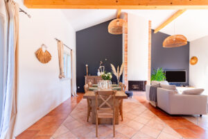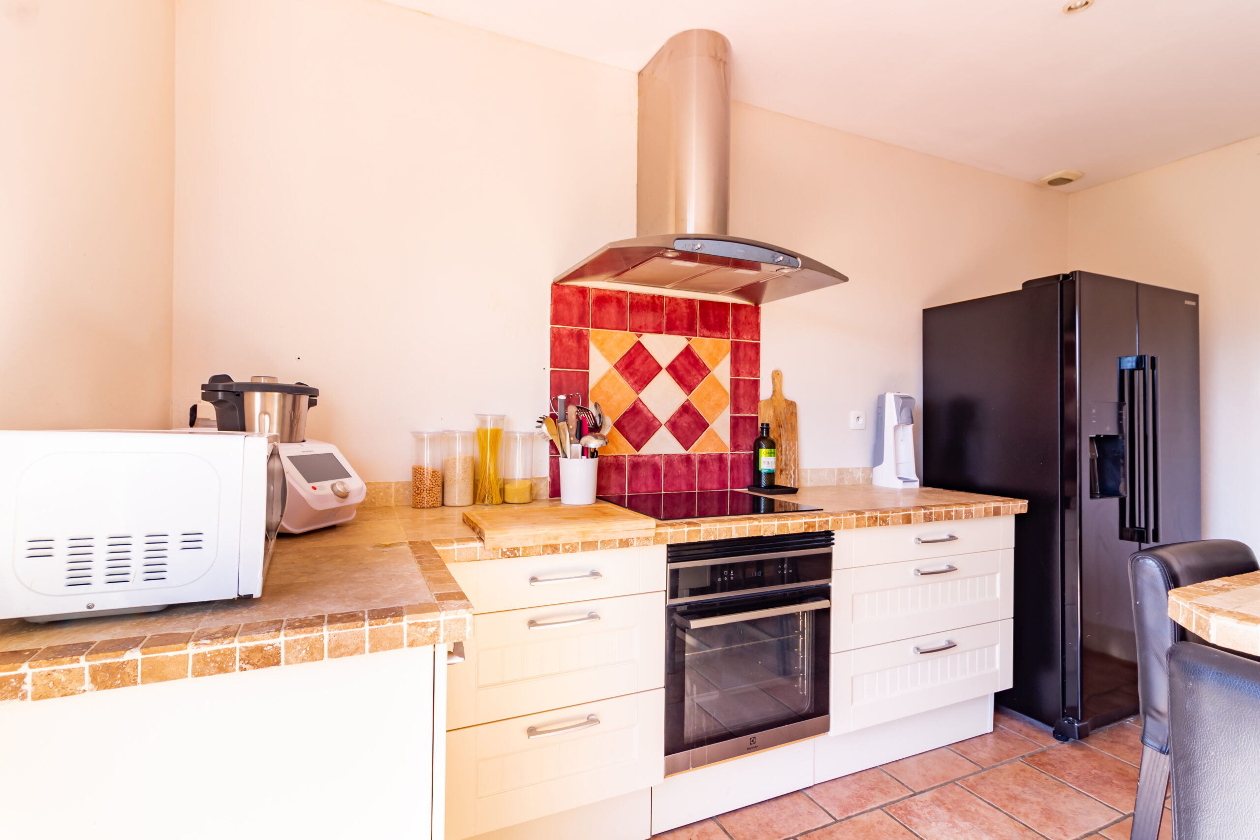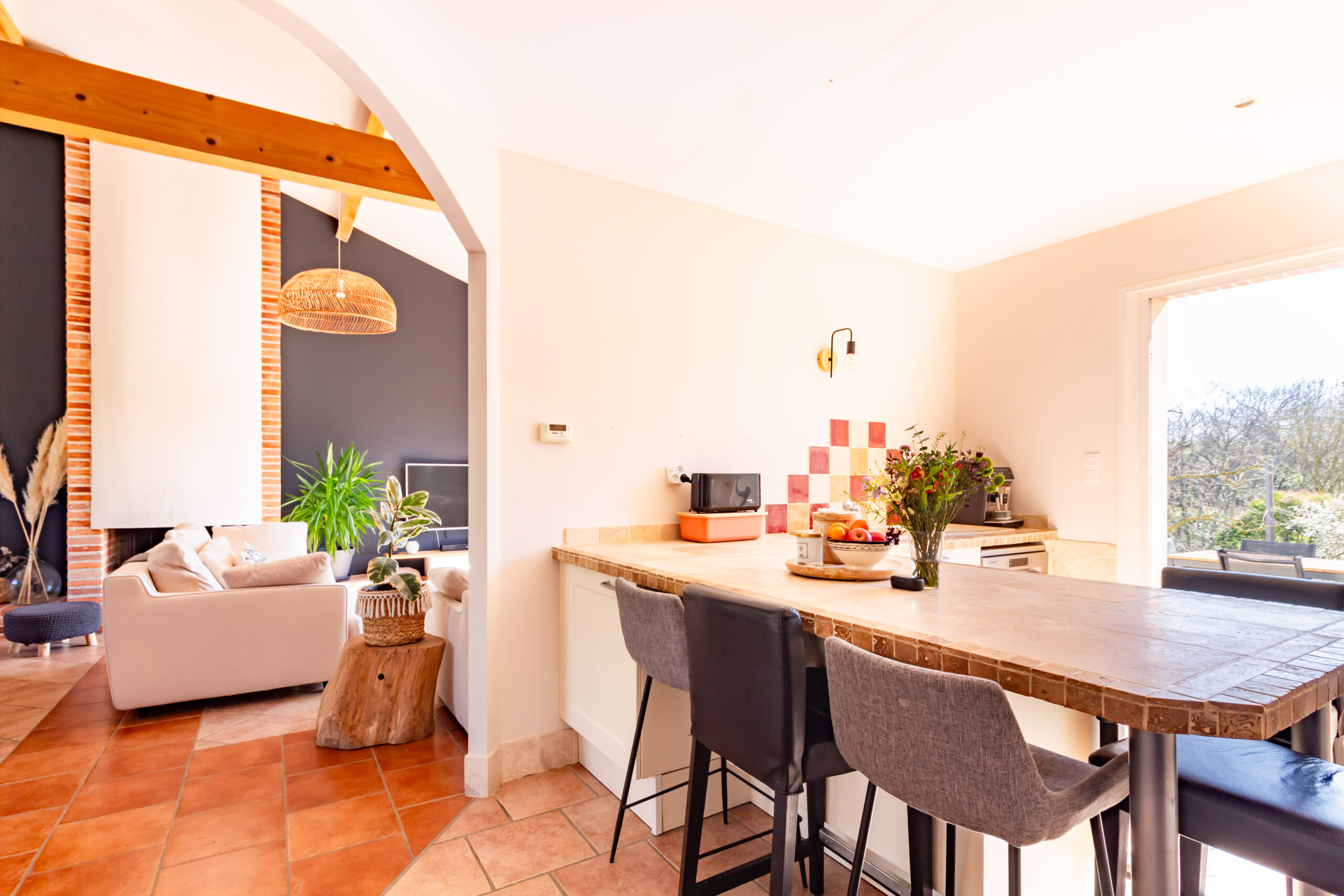 Dès l’entrée, vous serez séduit par une pièce de vie spacieuse et lumineuse avec plafond cathédrale, prolongée par une cuisine semi-ouverte équipée, idéale pour partager des moments conviviaux en famille ou entre amis.