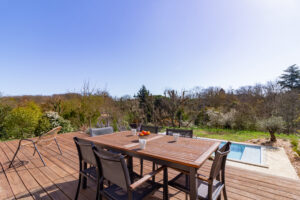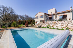 À l’extérieur, laissez-vous charmer par une parcelle arborée et paysagée de 1376m², agrémentée d’une superbe piscine invitant à la détente, dans un environnement calme et recherché.