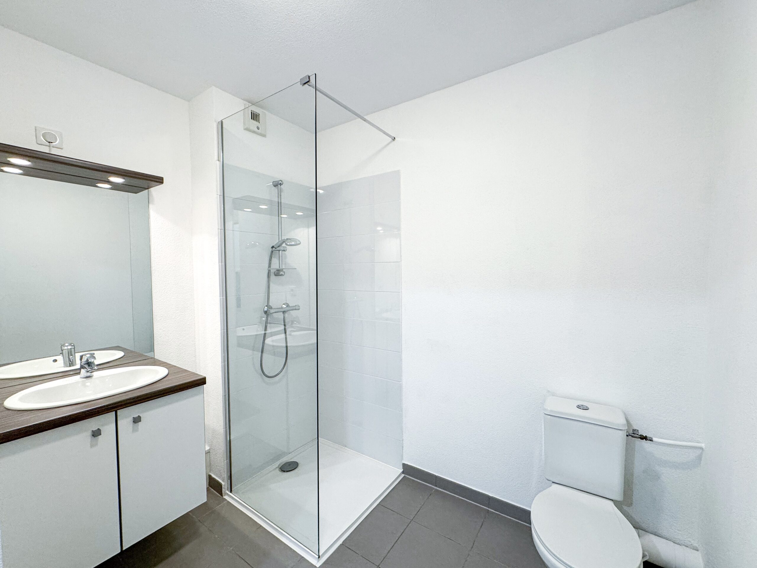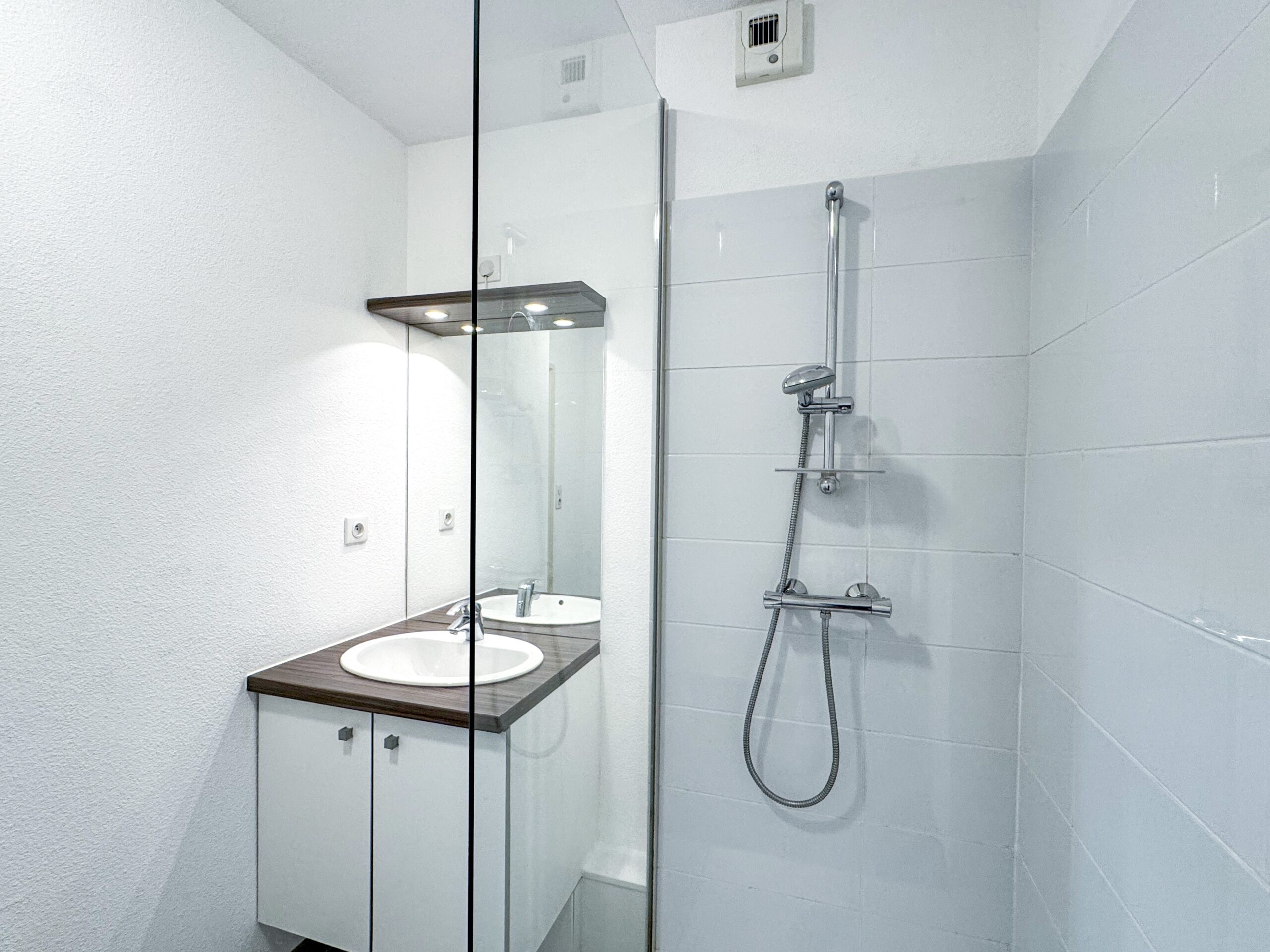 Depuis l’entrée, on accède également à une salle d’eau pratique avec WC, complétant harmonieusement l’agencement du logement.